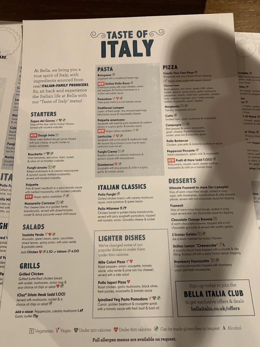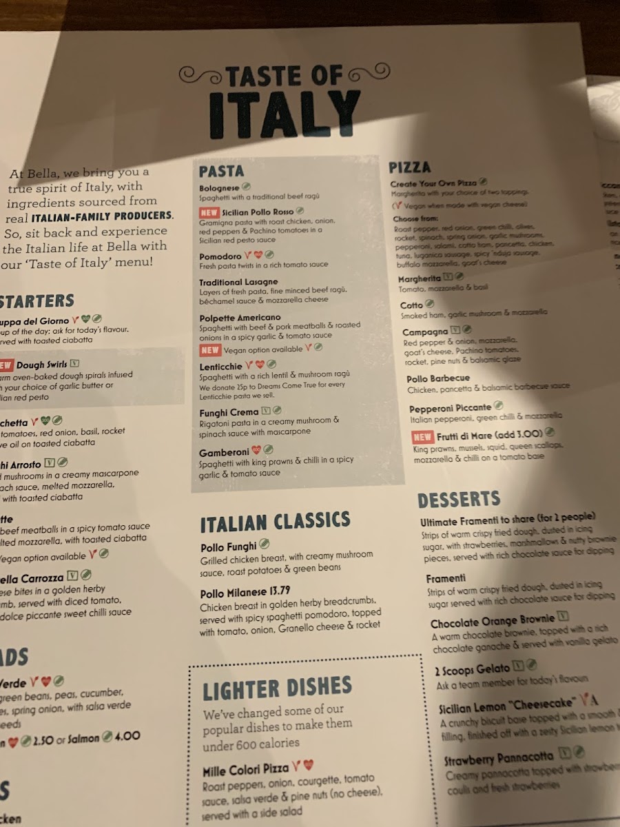 The Bella Italia - Crawley Menu delivers a vibrant celebration of Italian cuisine in a warm, family-friendly atmosphere. As a reviewer who frequently explores casual dining spots across the UK, I found this branch to be a reliable choice for both comfort food lovers and Italian food enthusiasts.